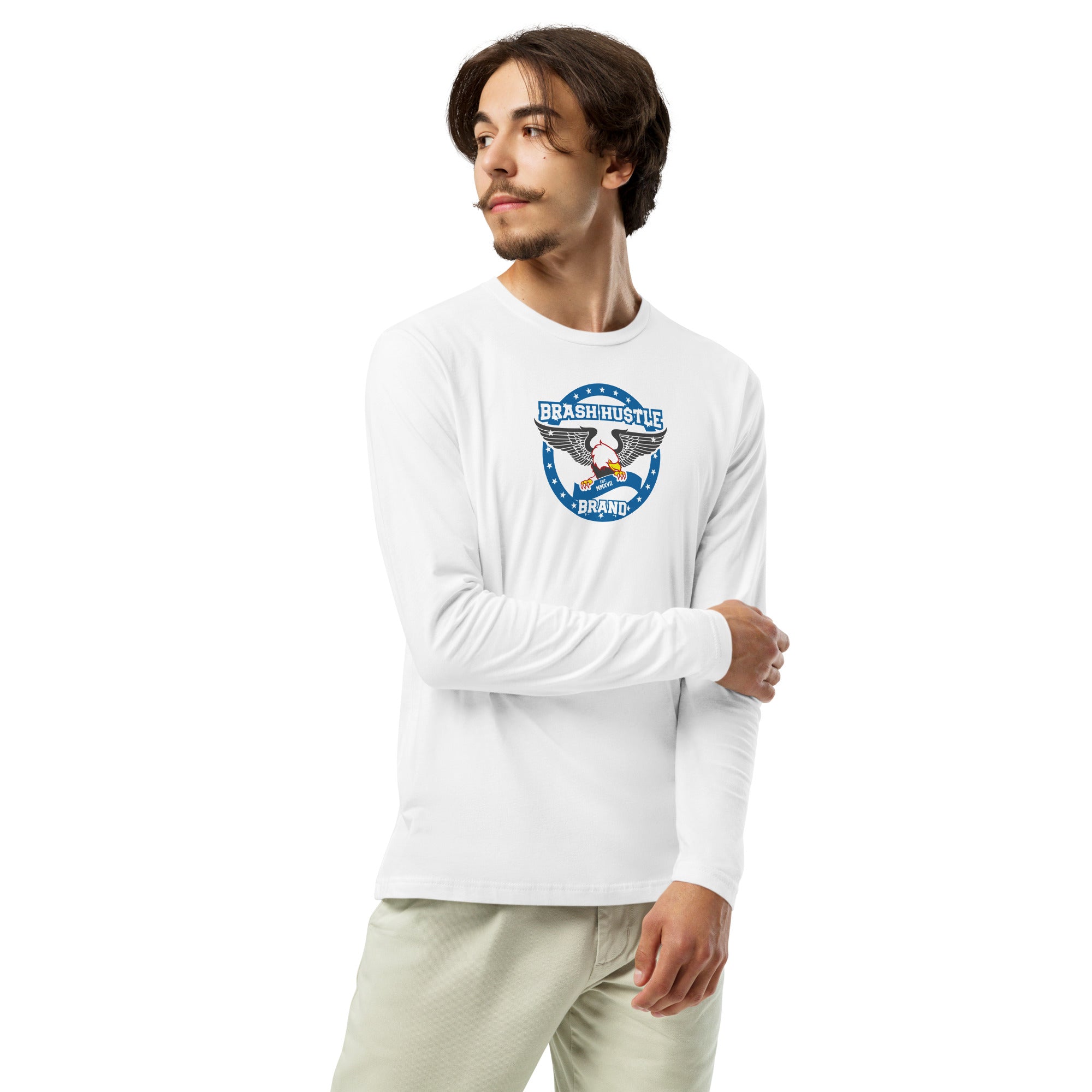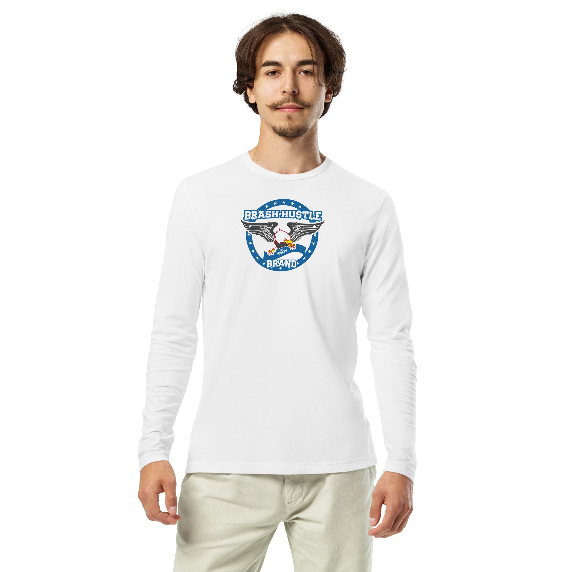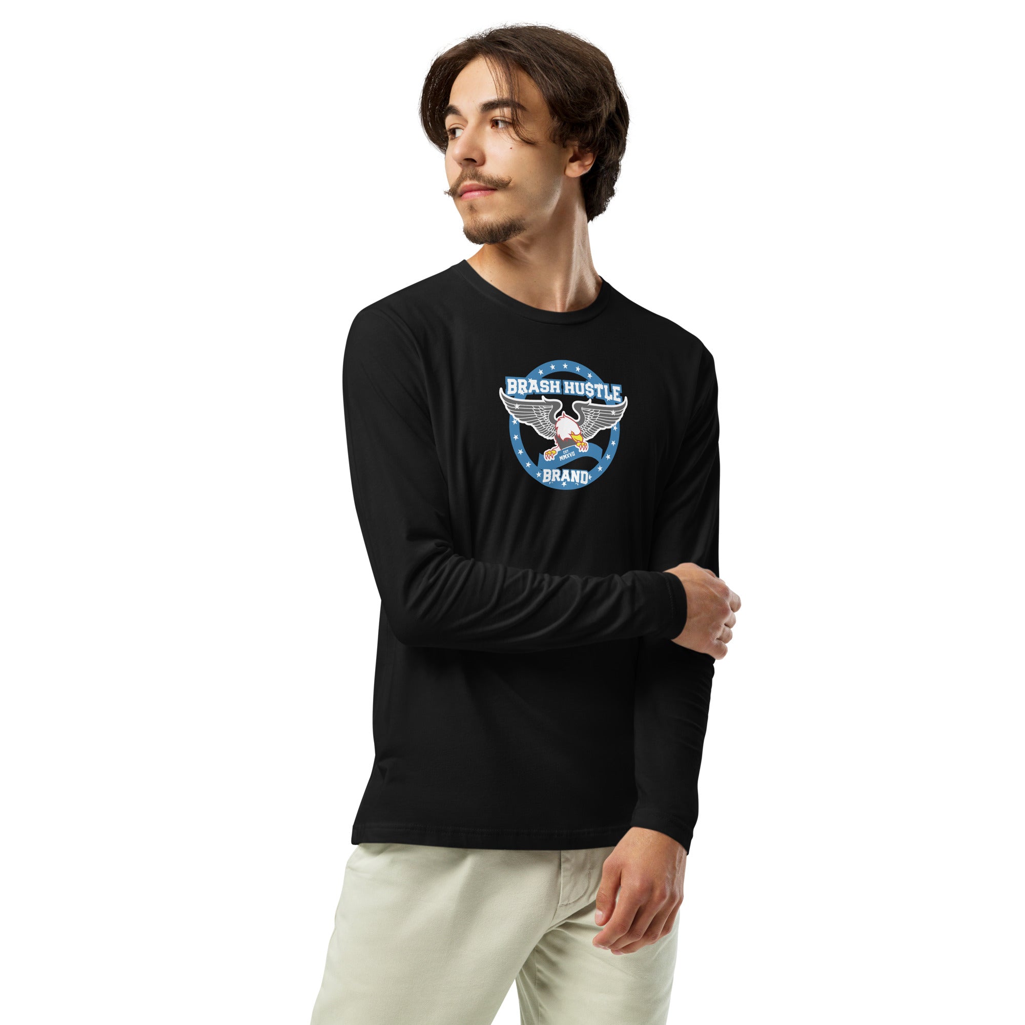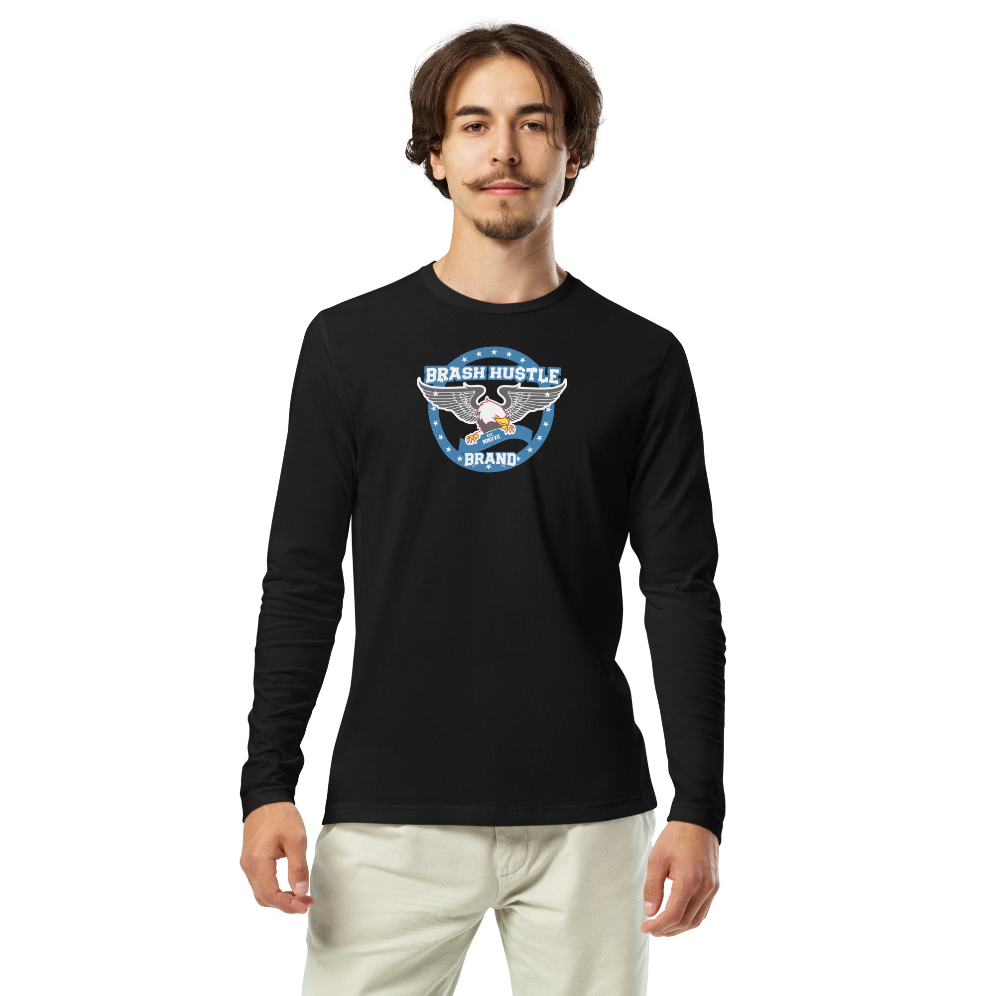 The Brash Hustle Brand Eagle Long-Sleeve Tee delivers lightweight comfort with bold identity. The iconic Fly High eagle crest sits front and center — a symbol of ambition, courage, and the drive to elevate. Designed with a fitted silhouette and soft stretch material, it’s perfect for layering under hoodies and jackets or wearing solo for a clean, athletic look. Breathable, stylish, and versatile enough for any season, this long sleeve is for those who hustle with wings on their back.